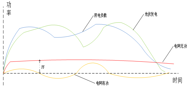 2.分布式光伏發(fā)電系統(tǒng)投入,光伏發(fā)電系統(tǒng)功率<用電功率時: